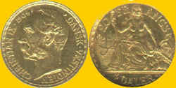 - 0,023M This NCLT coin was issued to commemorate the 350th anniversary of the claiming of Barbados for the English Crown. The obverse shows the ship Olive Branch with the denomination ONE HUNDRED DOLLARS. The reverse has the national arms flanked by the dates 1625 - 1975. The legend at the top is the event and the country's name is at the bottom. BAVARIA Bavaria in southern Germany was inhabited by Celts when the Roman emperor Drusus conquered it in 15 B.C.. The Baiuoarii tribe invaded it in the 6th century A.D. and set up the duchy to which they gave their name. It was one of the five basic or stem duchies of medieval Germany. Irish and Scottish monks began the Christianisation of the area, and it was completed in the 8th century by St. Boniface. The Wittelsbach family were given the Duchy of Bavaria in 1180 and they ruled until 1918. The title of King was granted in 1805. Germany united as a confederation under Prussia in 1871 but the States still had nominal autonomy and were ruled by kings or princes until the 1920s. After World War I, King Ludwig III was overthrown in 1918 by the socialists under Kurt Eisner. Eisner was assassinated in 1919 and a communist government was instituted for a short time. German forces intervened and Bavaria joined the Weimar Republic. Coinage from what is now Bavaria probably began in Frankish times. Bavaria gold coinage began in the early 14th century A.D. and continued through 1913. 20 Mark - 1873-D KM-501 - 7,965 g - 22 mm Edge - Reeded Mintage
