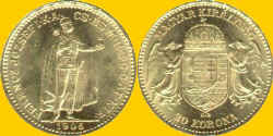 Mint was opened as a branch of the London Royal Mint in 1855. There are more Australian gold coins in this section if you are interested - Page Australia AUSTRIA The Danube Valley provided a conduit for various tribes that settled in present-day Austria -Celts, Romans, Vandals, Visigoths, Huns, Avars, and Slavs. Charlemagne established a territory in the Danube Valley known as the Ostmark in 803, and the area became Christianised and predominantly Germanic. By 1278 the Habsburgs had gained control and this mighty dynasty managed to rule Austria right up through the end of World War I. The last emperor, Franz Josef, ruled from 1848 to 1916. His nephew, Prince Ferdinand, was assassinated in Sarajevo on 14 June 1914. A month later, Austria-Hungary declared war on Serbia, the Russians came to the Serbians' aid and World War I was underway. After the war, Austria became a republic until, in 1937, it voted to become part of Germany. After World War II, it was occupied by the Four Powers who relinquished control in 1955 and the republic was reestablished. Coinage from Austrian