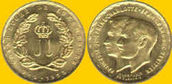 - 0,010M This coin was issued by the Republic of South Africa under the Afrikaaner regime. The country had a long tradition of gold coinage going back to the days of the Boer Republic (ZAR) and through the years of the Union to the present. The obverse pictures a half facing bust of Jan van Riebeck (b1619-d1689), founder of the first Dutch settlements in 1652 in South Africa, with the nation's motto in both Afrikaans and English. The reverse features a springbok with the nation's name in the two languages, the date above the springbok, and the denomination below. The Republic had a peaceful transition from white to black rule in 1994. Unfortunately, conditions have deteriorated in this once beautiful and prosperous country with crime now rampant and with severe inflationary pressures in the economy. SOVEREIGN MILITARY ORDER OF MALTA The Sovereign Military and Hospitaller Order of St John of Jerusalem, called of Rhodes, called of Malta (generally known as the Order of Malta), came into existence between c. 1080 when a hospital for pilgrims was established in Jerusalem near the Abbey of St Mary of the Latins, and 1113, when the hospital, its administrators and dependencies were recognized by the Pope as an Order of the Church, dedicated to the care of the sick poor. Half a century after its foundation it assumed military as well as hospitaller functions, and by 1200 it was playing a major role in the defence of the Christian settlements in Palestine and Syria which had been set up by the Crusaders. From its origins it was endowed on a massive scale in Western Europe and it developed an international structure to manage these properties for the benefit of its work in the East. Driven from Palestine with the rest of the Catholics in 1291, the Hospitallers of St John took over the island of Rhodes, off the coast of Asia Minor, which became their base for naval operations against Muslim shipping. They ruled the island as a semi-independent state until 1522. They were then given the island of Malta, which they held until 1798. During the centuries of the Order's government of Rhodes and Malta it became recognized as a sovereign power. With the loss of Malta the order's military functions ceased, and hospitaller work again became its only duty. It moved its headquarters to Rome in 1834. It is still regarded by many states (though not by all) as a sovereign subject of international public law. The seat of the Grand Magistracy in Rome, under the present Grand Master, HMEH Fra´ Andrew Bertie, has the right of extra-territoriality recognised by the Italian state.1