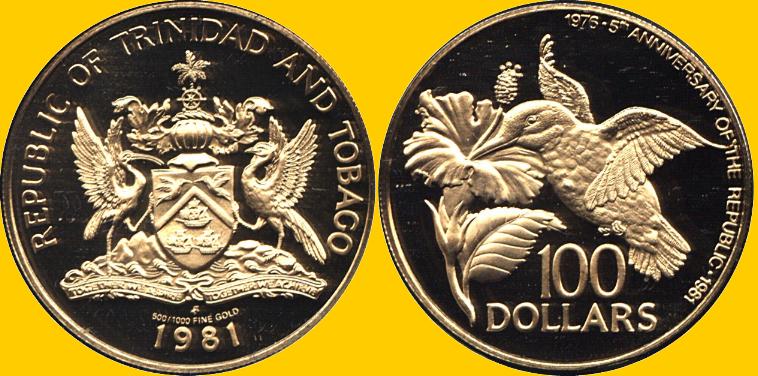 - Reeded Mintage - 400 The obverse of the NCLT "coin" features the nation's coat of arms with the name REPUBLIC OF TRINIDAD AND TOBAGO with the date 1981 at the bottom and 500/1000 FINE GOLD and the Franklin Mint mintmark above the date. The reverse has a hummingbird and flower with the denomination 100 DOLLARS below. A legend 1975 - 5th ANNIVERSARY OF INDEPENDENCE -1981 to the right. TUNISIA From Phoenician settlements begun in about 1000 BC, including Carthage, the region known today as Tunisia has figured in Mediterranean history ever since. The Romans, followed by the Vandals and the Byzantines, all desired Tunisia. Islam spread here in the seventh century and led to the country's emergence as an important Islamic center. In 1574, the Ottomans made Tunisia part of their empire, ruling from Constantinople. Tunisia became a French protectorate in 1881 and by the 20th century, nationalist movements began to surface. Their activities subsided during World War II, when Allied and Axis powers fought here, but resumed after the war. By the 1950s, it was clear that French control was coming to an end and independence was declared in 1956. Habib Bourguiba's New Constitution party took control of the government in 1957; he himself was named president for life in 1959. He was overthrown, however, in 1987. His former minister for the interior, Zine el-Abidine ben Ali declare himself head of state. 20