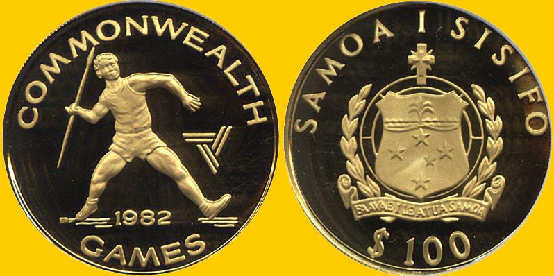 g This packet of 2.5 fold wafers was sold by Kim Thanh to Vietnamese boat people (refugees) fleeing the communist takeover of the Republic of Vietnam. This was the only way they could smuggle out any of their assets to start life anew somewhere else. These refugees had these packets sewn into their clothing or in makeshift money belts during their escape from communist tyranny. Many of these refugees were processed through Orote Point on the island of Guam where gold traders from Hong Kong converted their gold into US dollars or other hard currencies. While not coins, these are important numismatic pieces demonstrating the value of gold versus paper currencies. WESTERN SAMOA The islands were originally settled about 1000 BC a date arrived at by the dating of shards of Lapida pottery found at Mulifanua. By 200 BC Samoa was the center of a flourishing Polynesian community with trade taking place between Tonga, Fiji and Samoa. In about 1300 AD a group of settlers from Samoa colonised the Tokelau islands, explaining the similarity between the two languages. Dutchman, Jacob Roggeveen, was the first European to sight the islands, in 1722. Louis-Antoine de Bougainville, French explorer, named the islands the Navigator Islands in 1768, after encountering Samoans in ocean-going canoes. In 1787, the French ship La Perouse landed on Tutuila and a shore crew were attacked, leading to the death of 12 people. John Williams and Charles Barf, two missionaries from the London Missionary Society, arrived at Samoa in 1830 and were responsible for the introduction of Christianity and destruction of the traditional Samoan religion. In 1857 J.C. Godeffroy and Son (taken over by German Trading and Plantation Company when their business failed) a German company founded their depot in Apia, a move which lead to Samoa becoming the most popular trading post in the Pacific at that time. The Treaty of Berlin was signed in 1889, which guaranteed that Samoa would retain political independence under the control of it's own king, who would be advised by the American, British and German consuls. On 2 December 1899 the Tripartite Treaty replaced, Treaty of Berlin and Western Samoa passed into the hands of Germany, whilst America gained what is now called American Samoa. In 1914 at the outset of the First World War, New Zealand took control of Western Samoa, replacing Germany as it's colonial master's, and retained it when the war ended under a mandate from the League of Nations. A major change in government was made in 1947 when the Samoan Legislative body was altered such that it was composed of a Samoan majority and granted substantial powers. Western Samoa was the first Polynesian state to gain, independence obtaining it from New Zealand in 1962. In 1970 it became a member of the Commonwealth. In July 1997 Western Samoa formally adopted the name "Samoa". $100